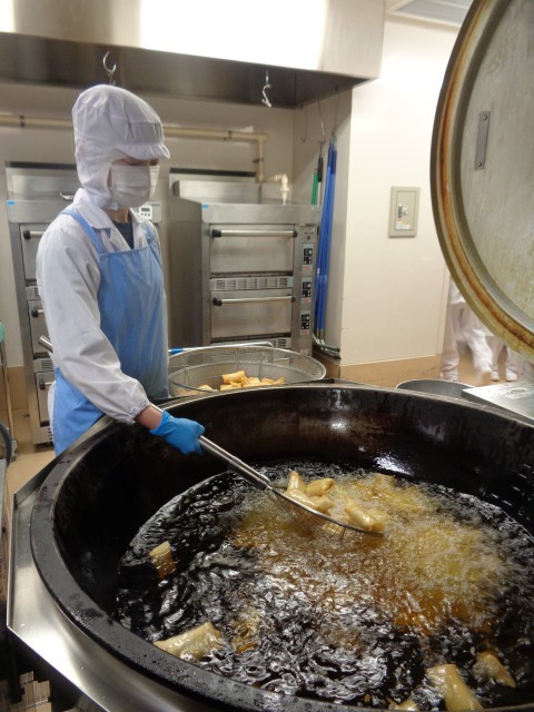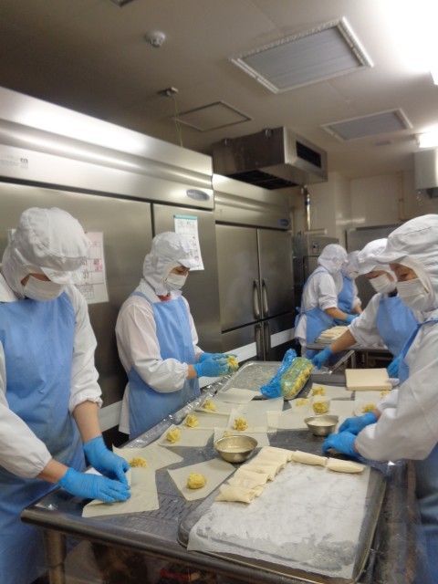 人気メニュー「りんごとさつまいもの包み揚げ」 さつまいもを蒸して潰し、りんごを煮てさつまいもと合わせ、春巻きの皮で包んで油で揚げます。