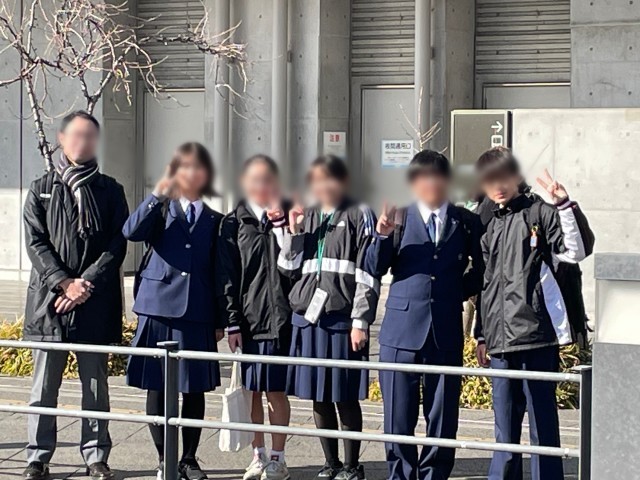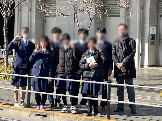 東京スカイツリーのチェックポイント。高橋先生とともに記念撮影。