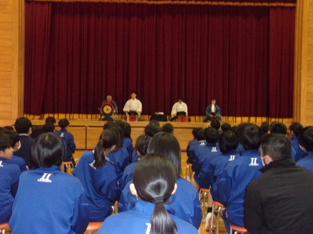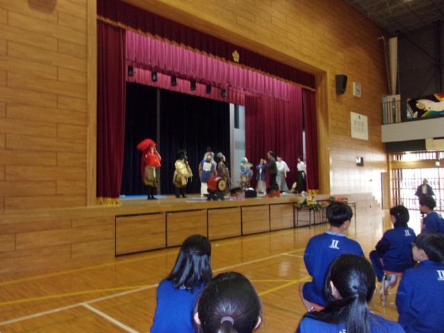 本日、7年生の総合的な学習の時間で、成増に伝わる伝統芸能「里神楽」の鑑賞を行いました。