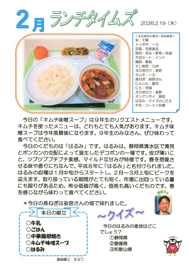 今日のくだものは「はるみ」です。Sサイズのはるみを一人1個付けです。