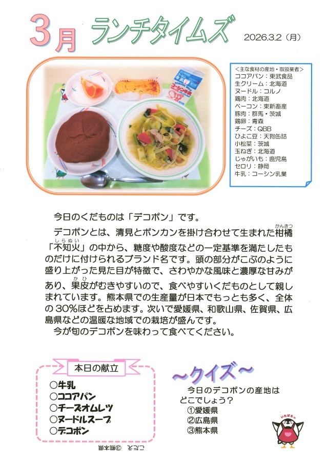 3月2日(月)給食