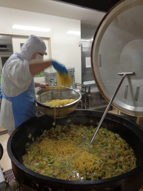 「ヌードルスープ」ヌードルを固めにゆでて、最後にスープへ入れます。