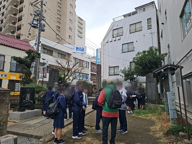 近藤勇の墓。ボランティアガイドさんの素敵な案内で見聞を深めました。