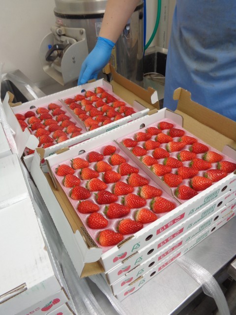 「ビタミンたっぷり風邪予防いちご」今日のいちごは静岡県産の“きらぴ香”です。新品種で、果肉がきらきらしていて高級感のあるいちごです。