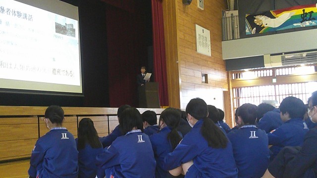 3月9日(月)後の全校朝礼後に、海外派遣&平和の旅発表会を実施しました。