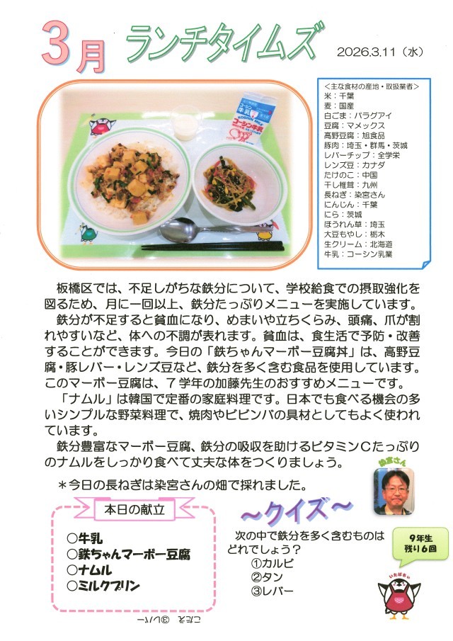 3月11日(水)給食