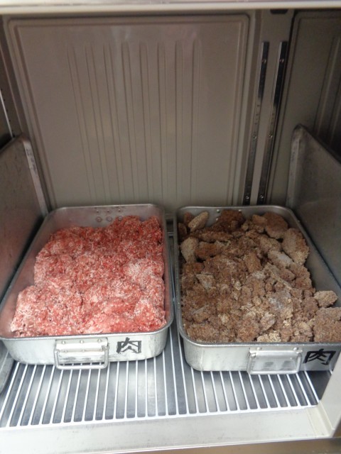 「鉄ちゃんマーボー豆腐」豚ひき肉と豚レバー(レバーチップ)を合わせて作ります。
