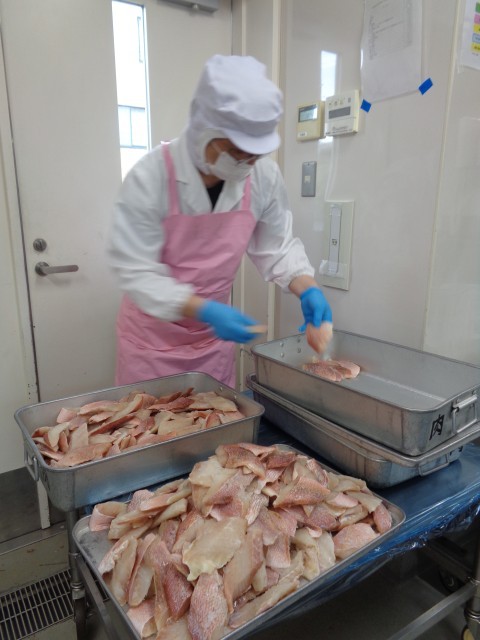 「赤魚の黄金焼き」数と品質をチェックします。きれいな赤魚が届きました。