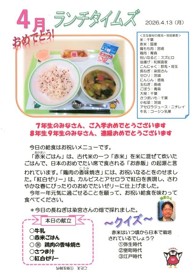 4月13日(月)給食