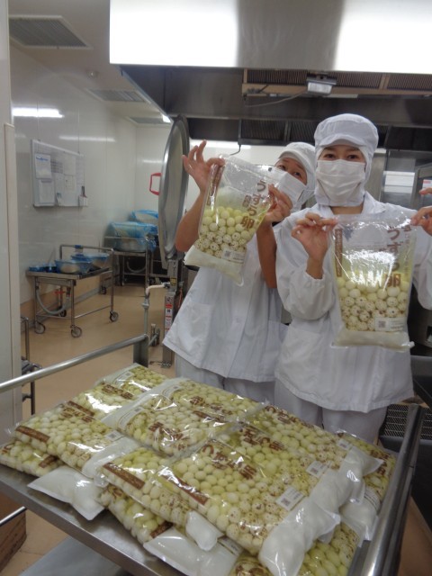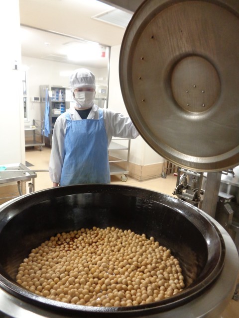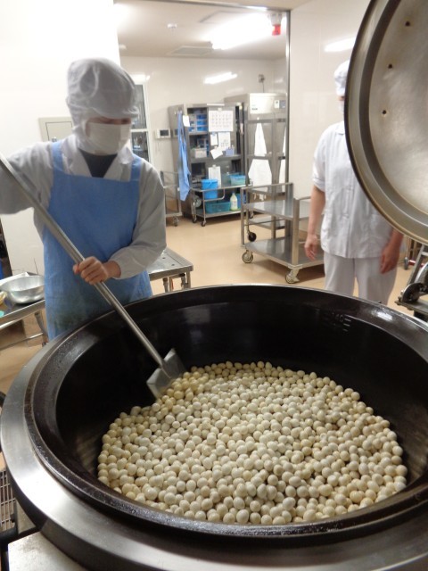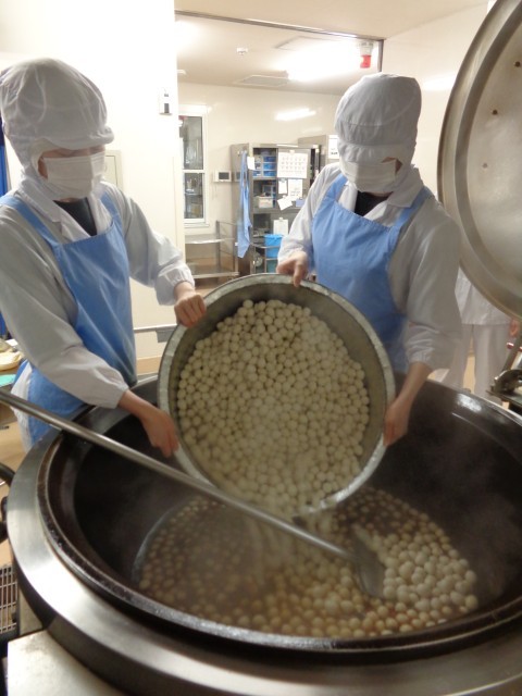 「うずら煮卵」およそ2000個のうずら卵。赤二中秘伝の合わせ調味料で30分ほど煮詰めます。つやつやのうずら煮卵の出来上がりです。