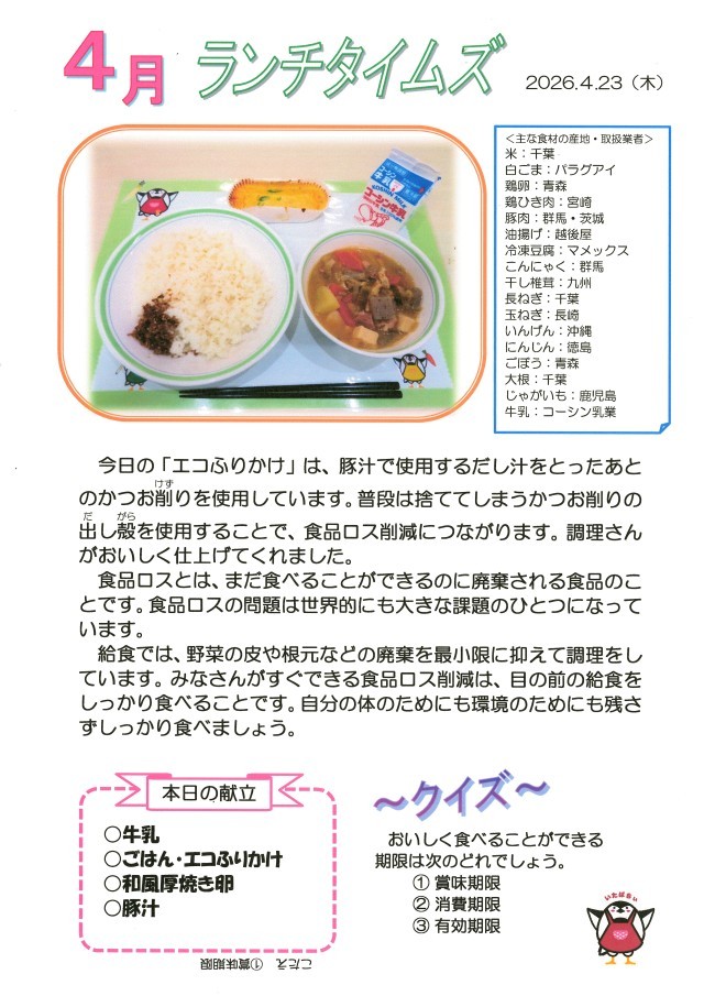 4月23日(木)給食