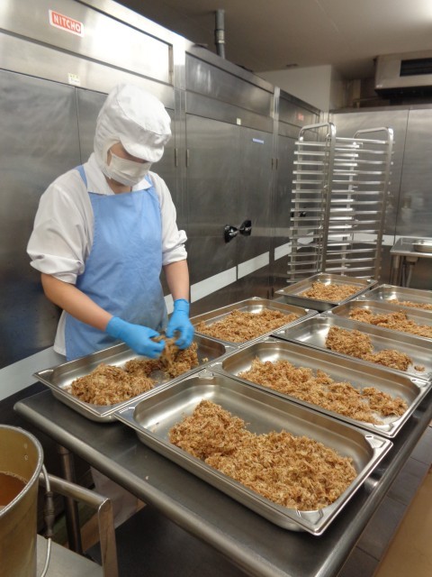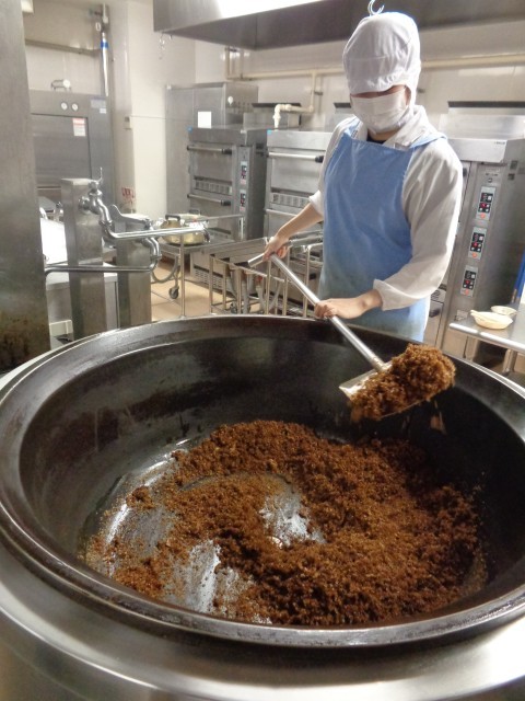 「エコふりかけ」出汁をとったあとのかつお削りをほぐして、オーブンで乾燥させます。調味料と一緒に釜で炒って仕上げます。