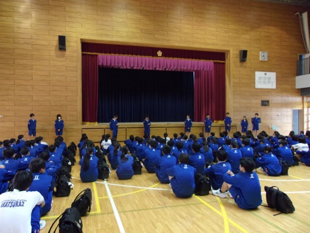 今回の学年朝礼では、学級委員から各クラスの現状を踏まえ、「こういうクラスにしていきたい」と意気込みを発表しました。