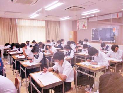 「ほっ」とする間もなく、昨日までの中間考査に引き続きです。しかし、さすが9年生、最後の理科のテストまで手を抜くことなく、熱中して取り組んでいました。