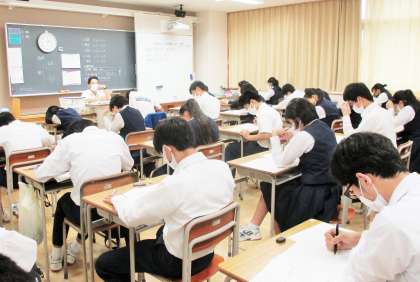 9年生は国語、数学、英語、社会、理科の5教科で到達度テストが行われました。