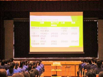 6校時に9年生と保護者を対象にした今年度第2回の進路説明会が開催されました。