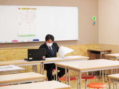 9年生が下校し、三者面談の予定時刻が始まる前の僅かな時間を利用して、担任は準備に余念がありません。