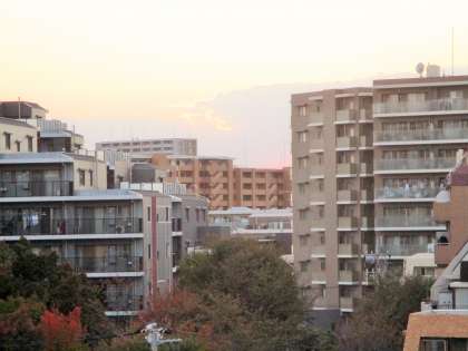 屋上からの景色をお楽しみください。夕暮れ前の空は気持ちを落ち着かせてくれます。