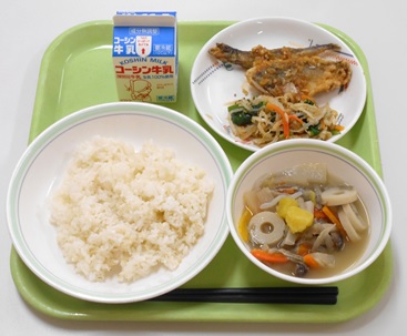 ご飯 鰺とししゃもの南蛮揚げ 切り干し大根のナムル 根菜の利久汁 牛乳