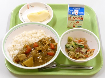 チキンカレーライス 海藻サラダ りんご 牛乳