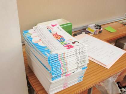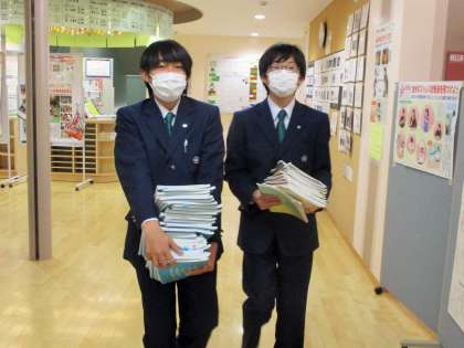 教科リーダーが皆に声をかけて各教科の提出物を回収し、教科担当の教師に提出しています。