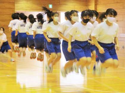 全校大縄跳び大会が昨日の7年生に引き続き、本日8年生が実施されました。今回の大会は7年生、8年生、9年生の縦割り兄弟姉妹学級の合計回数で競われます。果たして何組の縦割り兄弟姉妹学級が優勝するのでしょうか。