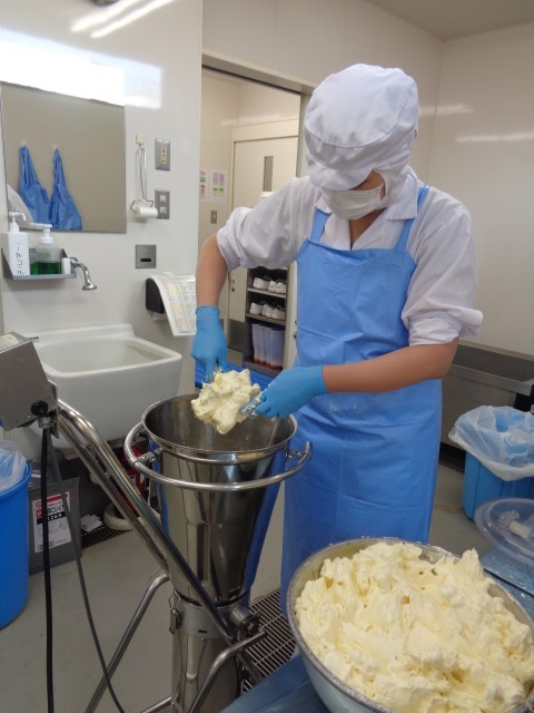 大きなミキサーで生地を作ります