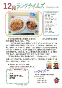 実習生作成献立【冬至のぽかぽか給食】「小松菜のふりかけ」山口さんの小松菜と一緒に、石井さんの大根の葉っぱも入れて作りました。「かぼちゃと根菜のみそ汁」冬至といえばかぼちゃ!甘くておいしいかぼちゃが入っ...