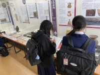 郷土資料館の様子です。多くの生徒は一度来たことがあるようです。時間が経っていることもあり、記憶が残っていないようで、板橋の成り立ちなど、それぞれ学んでいます。