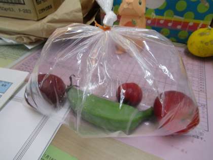 当初は、茎は細く、背の低かったバナナの木も今では、茎は何倍もの太さになり、高さは2階にも届きそうなほど成長しました。夏頃にはようやく実を付け始め、熟すのを楽しみに待っていました。しかし、いつになっても熟す様子は見られませんでした。調べてみたところ、「追熟処理」にリンゴから発生する「ガス」が必要だということで校内にある姫リンゴと一緒に密封した袋に入れ、経過を観察しこうと思います。