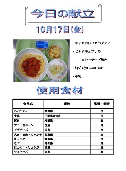 10月17日(金)の献立