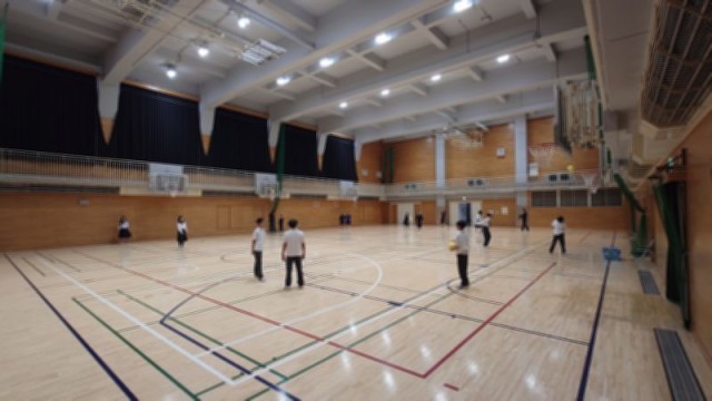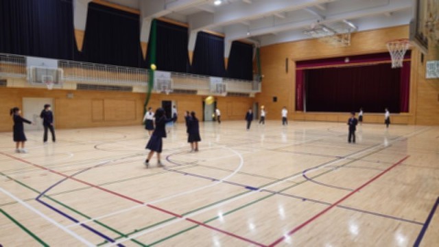 校庭が雨天で使用できないため、今日は7年生が体育館で昼休みを過ごしました。