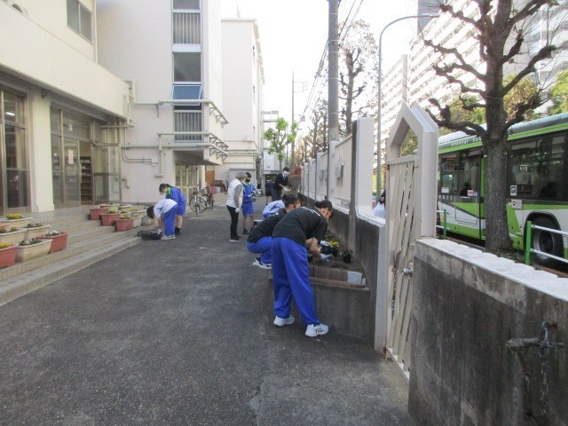 R071114 学校地域支援本部主催 植栽ボランティア活動 公開日 2025/11/20 更新日 2025/11/20 できごと 11月14日(金)期末考査3日後の放課後、学校地域支援本部主催の植栽ボランティア活動が行われました。当日はボランティアの生徒が50人近く集まり、学校の敷地内・バス通り・高二小前の花壇に花を植えました。