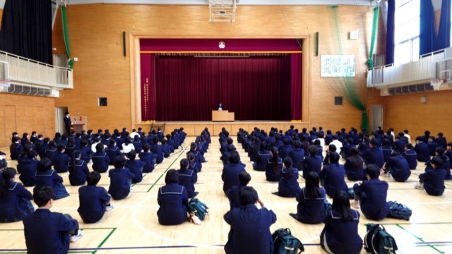 当日は生徒会長から各学年の生徒への応援メッセージがありました。