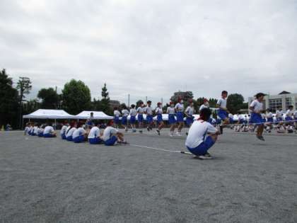 体育祭予行(9年大縄跳び) 公開日 2023/05/31 更新日 2023/05/31 できごと 9年生の大縄跳びは、クラスを男女混成の2チーム(前半チーム、後半チーム)に分け、全員そろって跳べた最高回数の合計で勝敗を競います。競技時間は5分で、競技終了時に跳んでいる最中の場合は継続して跳ぶことができます。 今日は、3組の2チームの合計が132回で第1位でした。2位は4組の116回です。残りの期間、作戦を練り頑張ってください。