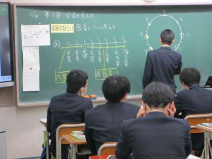 (写真は9年1組の授業の様子です。)