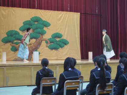 12月17日(火)に東京都の事業の「笑顔と学びのプロジェクト」として狂言鑑賞を実施いたしました。当日は、和泉元彌さんをはじめ和泉流 宗家の方々に来ていただき、日本の伝統文化である狂言を見せていただき、ワークショップを通して狂言の素晴らしさを奥深く教えていただきました