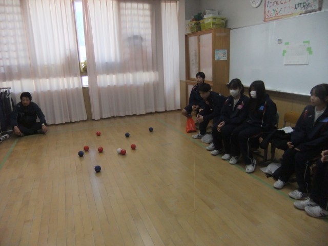 7年生は本日、ボッチャを通して高島特別支援学校との交流学習を行いました。