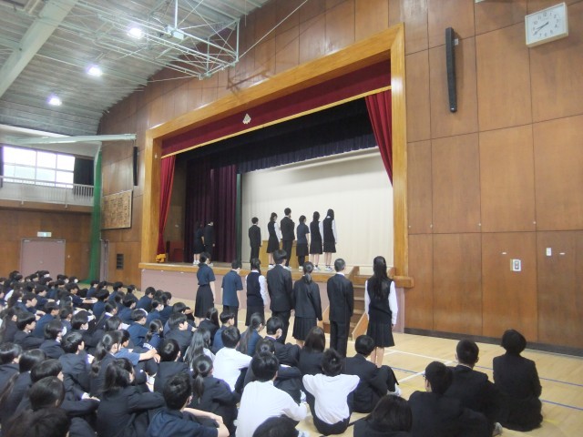 本日の生徒会朝礼で認証式を行いました。前期の専門委員の代表、生徒会役員が校長先生から認証状を受け取りました。