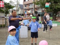 年長さんがお祭りに必要な物を作り始め、お祭りごっこになりました。とうもろこし、焼きそば、ラムネなどのお店の他に、わなげやスーパーボールすくいなど、様々なお店を子どもたちのイメージを大切にしながら作りま...