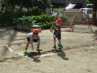 年少さんが二丁目公園へお散歩に行きました。一列になって歩くことが少しずつ上手になっています。公園に着いたら、園庭よりももっと広いところで、鬼ごっこです。ワニさんにつかまらないように、逃げることを楽しん...