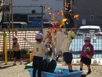 1学期の終わりには、砂場の道具もきれいに洗います。汚れているところがきれいになると、喜ぶ声が聞こえてきます。自分で洗う道具を選んで、ゴシゴシ、キュッキュッ。気持ちよく水で洗って、最後まできれいにしてく...