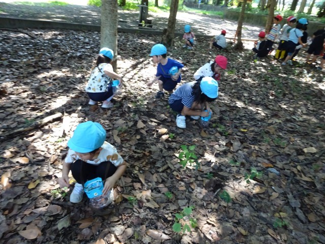どんぐりを見つけては、次々に拾う子どもたちです。