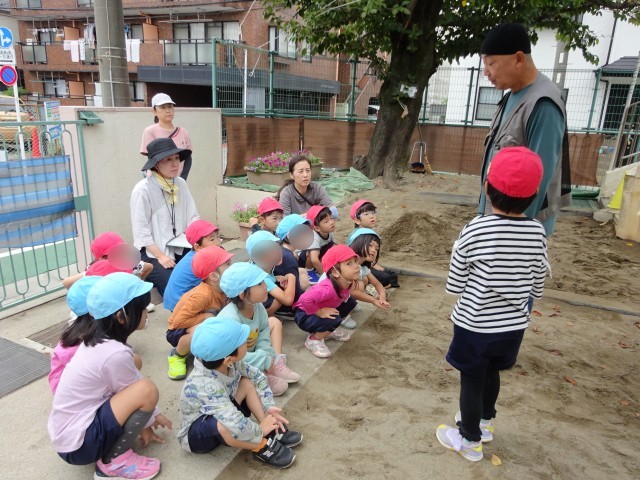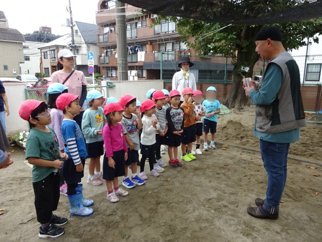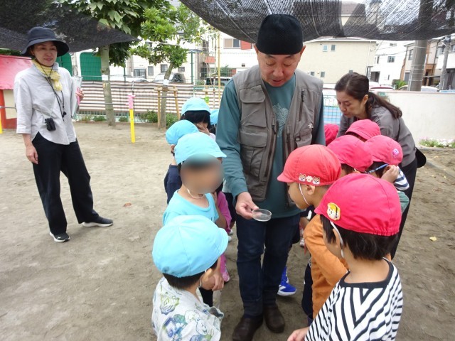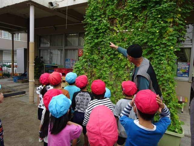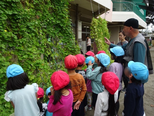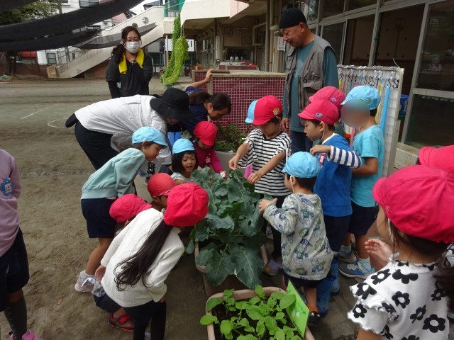 ふだんから、自然物とかかわることが多い年中さん。自分たちが育てている野菜の葉の裏に虫がいることが分かって、みんなで大捜索!ますます自然への興味が強くなっていきます。
