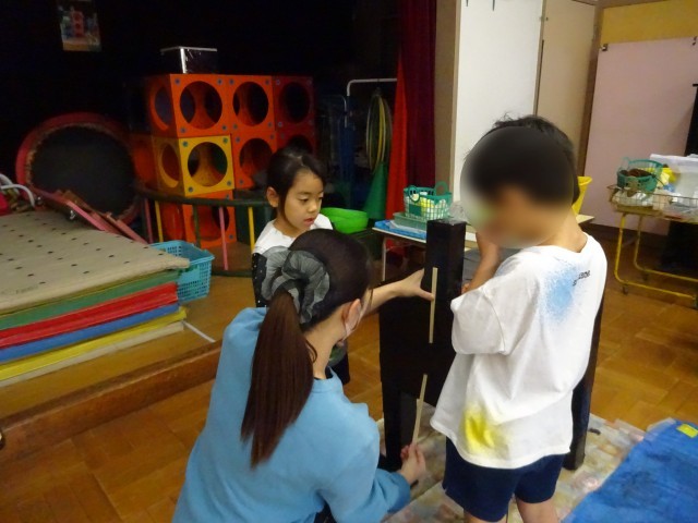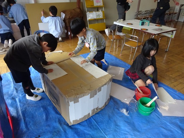 友達と相談して進めながら、どんなふうに作っていくか考えを出し合って作り上げていきます。