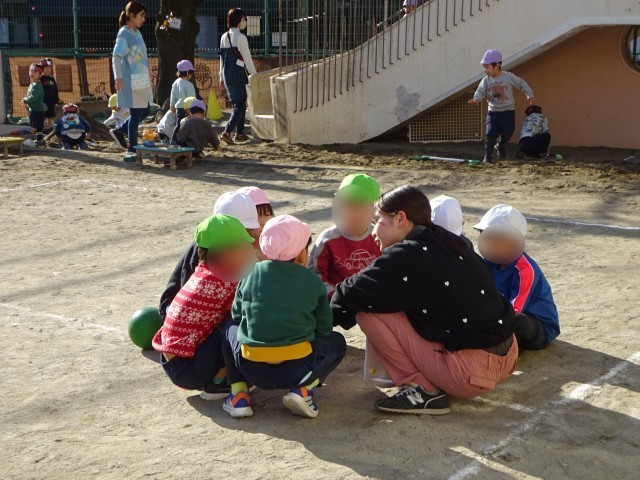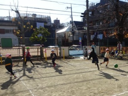 年長さんは、ドッジボールを自分たちで進めて楽しんでいます。