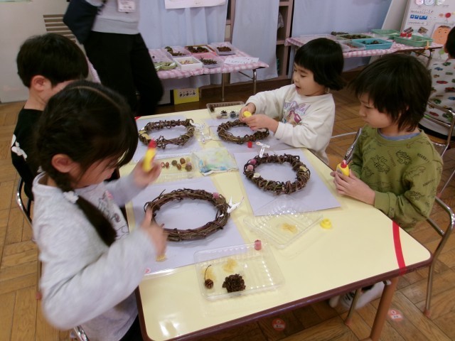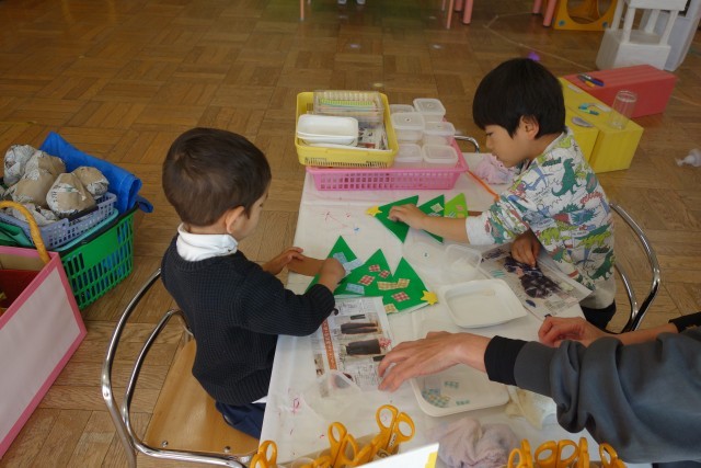 年少さんも、年長さんも、発達に合わせた素材ややり方で作っています。