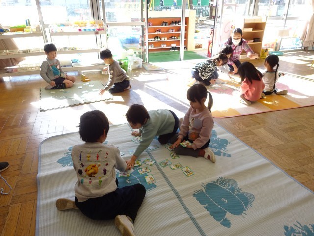 いくつもカルタを用意して、1グループの人数を減らしてカルタ取り。