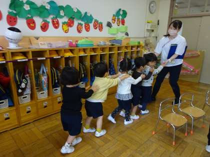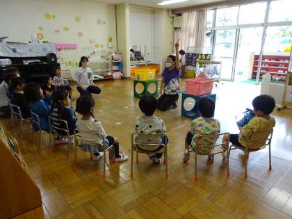 少しずつ先生の話が聞けるようになってきた年少さん。