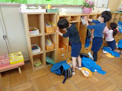 自分のロッカーや靴箱を拭きました